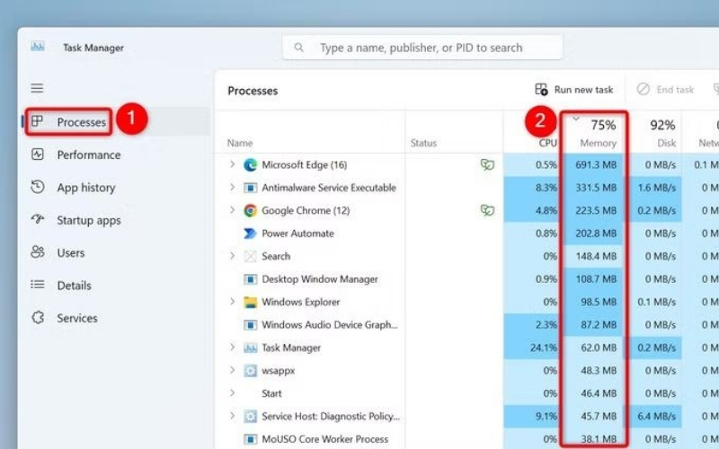 - Sử dụng trình quản lý tác vụ (Task Manager) để tắt các tab bị treo chiếm dụng tài nguyên.